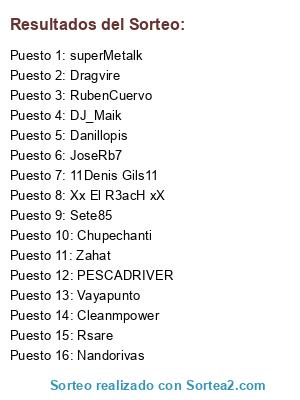 Lista de participantes: JoseRb7, 11Denis Gils11, Xx El R3acH xX, Rsare, DJ_Maik, Nandorivas, Zahat, Vayapunto, RubenCuervo, Dragvire, Sete85, superMetalk, Chupechanti, Cleanmpower, PESCADRIVER, Danillopis.