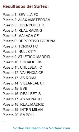 Resultados del sorteo: