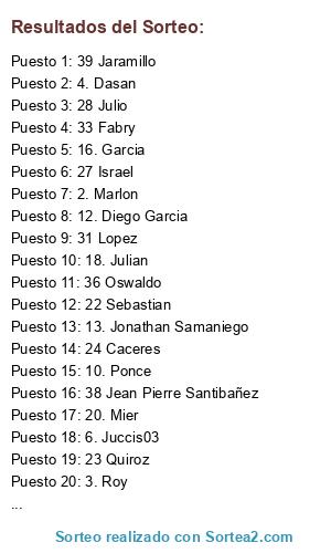 Lista de participantes: Jaramillo, Pando, Arana, Franco, John, Teddy, Estiven, Jose Daniel, Caceres, Ñauta, Garrido, Garcia, Lopez, Monchi, Mier, Quiroz.