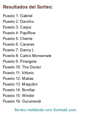 Lista de participantes: PapiRow, The Doctor, Winder, Matias, Gurumendi, Davicho, Carlos Monserrate, Danny L, Pinargote, Maquilon, Caceres, Bonifaz, Vittorio, Gabriel, Chente, Carpio.