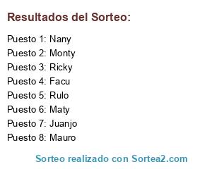 Lista de participantes: Nany, Monty, Maty, Juanjo, Mauro, Ricky, Facu, Rulo.