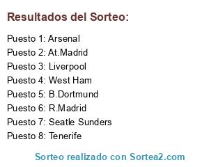 Lista de participantes: B.Dortmund, West Ham, Arsenal, At.Madrid, Liverpool, Seatle Sunders, R.Madrid, Tenerife.