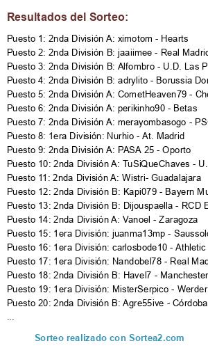 Resultados del sorteo: