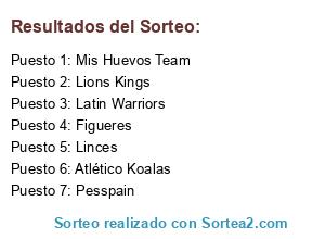 Lista de participantes: Atlético Koalas, Figueres, Pesspain, Lions Kings, Linces, Latin Warriors, Mis Huevos Team.