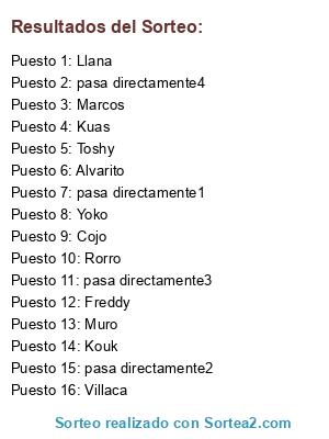 Lista de participantes: Carletto, Fooonnnso 10, Secogol, Kaisser Verdu, Castelo, Pacotelli, cifu, David Olmos.