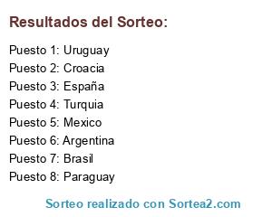 Lista de participantes: Brasil, Croacia, Argentina, Uruguay, Paraguay, Mexico, España, Turquia.