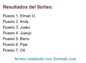 Lista de participantes: Oti, Juako, Andy, Pipe, Berru, Juanjo, Elman U..