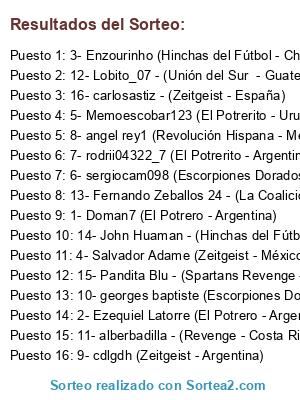 Resultados del sorteo: