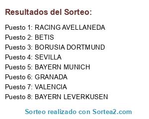 Resultados del sorteo: