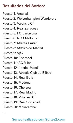 Lista de participantes: Inter, Wolverhampton Wanderers, AC Milan, Leeds United, Borussia Dortmund, RCD Mallorca, FC Barcelona, Arsenal, Valencia CF, CD Tenerife, Ajax, RCD Espanyol, SL Benfica, Real Betis, Manchester United, Athletic Club de Bilbao, Liverpool, Real Madrid, Chelsea, RC Celta de Vigo, Manchester City, Real Sociedad, Real Zaragoza, Atlético de Madrid, Atlanta United, FC Bayern Munich, Villarreal CF, FC Andorra, Morecambe, Modena.