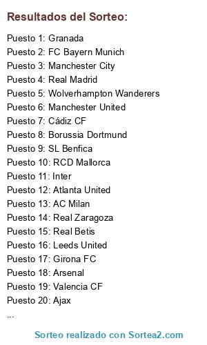 Lista de participantes: Inter, AC Milan, FC Barcelona, Ajax, Athletic Club de Bilbao, Borussia Dortmund, Valencia CF, Arsenal, Nottingham Forest, Wolverhampton Wanderers, Real Madrid, RC Celta de Vigo, Manchester City, Atlanta United, RCD Mallorca, Liverpool, FC Andorra, Manchester United, Leeds United, Girona FC, Granada, Real Betis, FC Bayern Munich, Albacete, Real Zaragoza, SL Benfica, Cádiz CF, Real Sociedad, Morecambe, Sevilla FC.