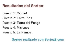 Lista de participantes: Ciudad, Entre Ríos, La Pampa, Misiones, Tierra del Fuego.