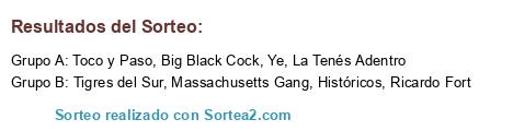 Lista de participantes: Big Black Cock, Históricos, La Tenés Adentro, Massachusetts Gang, Ricardo Fort, Tigres del Sur, Toco y Paso, Ye.