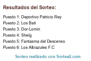 Lista de participantes: Fantasma del Descenso, Shelg, Dor-Lomin, Deportivo Patricio Rey, Los Bati, Los Albiazules F.C.
