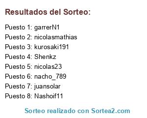 Lista de participantes: nacho_789, nicolas23, juansolar, kurosaki191, nicolasmathias, Shenkz, garrerN1, Nashoif11.