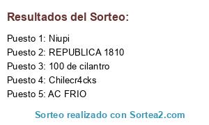 Lista de participantes: 100 de cilantro, AC FRIO, Chilecr4cks, Niupi, REPUBLICA 1810.