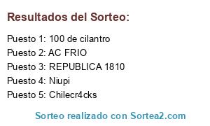 Lista de participantes: 100 de cilantro, AC FRIO, Chilecr4cks, Niupi, REPUBLICA 1810.