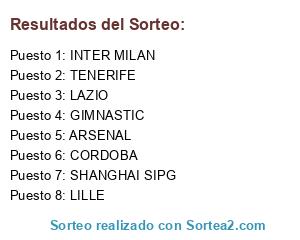 Lista de participantes: LAZIO, CORDOBA, INTER MILAN, GIMNASTIC, TENERIFE, LILLE, ARSENAL, SHANGHAI SIPG.