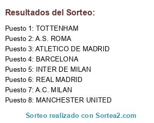 Resultados del sorteo: