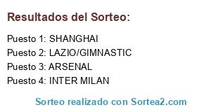 Lista de participantes: INTER MILAN, LAZIO/GIMNASTIC, ARSENAL, SHANGHAI.