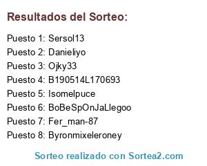 Lista de participantes: Sacisto, Borjarember, Errol_mitchum, RonMatusalem13, Aronsito86, esparta087, Fer_man-87, Santo004.