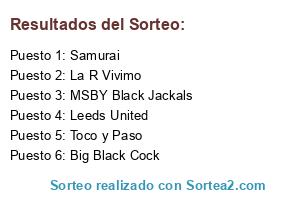 Lista de participantes: La R Vivimo, Leeds United, Samurai, Big Black Cock, Toco y Paso, MSBY Black Jackals.