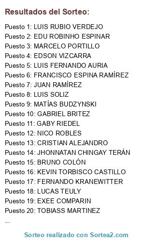 Resultados del sorteo: