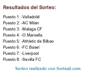 Lista de participantes: -Liverpool, -AC Milan, -Malaga CF, -O.Marsella, -Valladolid, -Athletic de Bilbao, -FC Basel, -Sevilla FC.