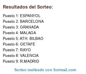 Lista de participantes: BARCELONA, ATH. BILBAO, GETAFE, MALAGA, R.MADRID, GRANADA, VALENCIA, RAYO, ESPANYOL.