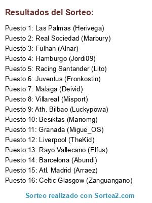 Lista de participantes: 1. rafa_rafinho / Rafa_Jimenez, 10.Gracioso_Kid / Gracioso_Kid, 11. x__fumon__x / x__fumon__x, 12.pakov92 / Cripto7, 13.jrold / Jrolld, 14.Granota / Elmilo2010, 15.Currin / asturcon3, 16.Gutimberto10 / Gutimberto10, 17.Arcipe / Arcipe, 18.Asturcon3 / asturcon3, 19.Siyalosabes / Siyalosabes, 2.Nathus / Nathus, 20.elreyelfo / elreyelfo, 21.mario_mg / mariomg_80, 22.Boikot25 / X-Angel_Caido-X, 23.Golum / Gui9417, 24.tomeition / tomeition, 25.Wriley52 / Wriley52, 26.pyro_jojumar / pyro_jojumar, 27.JCS / MaXinecat, 28.-killer_cod5- / smigol85, 29.dvdplayer / dvdplayer7, 3.Giovanicede / Gusacedeira, 30.Alnuca / Tunuca, 31.Farragus / Farragus, 32.ruco_moraira / ruco_moraira, 4.Socunpelat / Socunpelat, 5.Rodri8 / RoDRii8, 6.Sparrow3 / Sparrow3, 7.MANUUDS / MANUUDS, 8.Boqueron69 / Sertoni, 9.Markiteps / Markiteps.