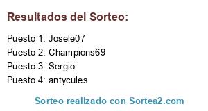 Lista de participantes: Champions69, antycules, Josele07, Sergio.