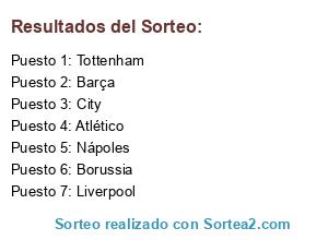 Lista de participantes: Atlético, Borussia, Tottenham, Nápoles, Barça, Liverpool, City.