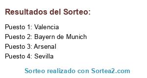 Lista de participantes: Sevilla, Valencia, Bayern de Munich, Arsenal.