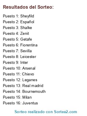 Resultados del sorteo: