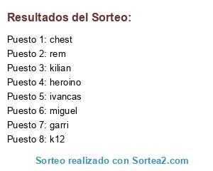 Lista de participantes: chest, rem, kilian, miguel, k12, heroino, garri, ivancas.