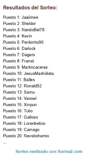 Resultados del sorteo: