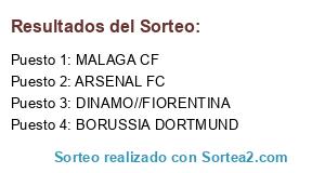 Lista de participantes: MALAGA CF, ARSENAL FC, BORUSSIA DORTMUND, DINAMO//FIORENTINA.