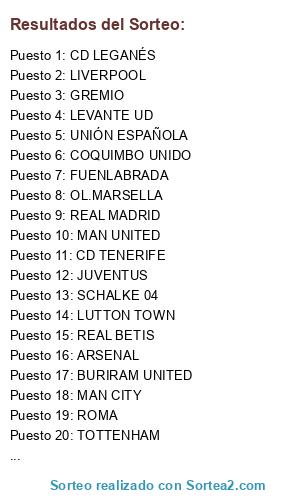 Resultados del sorteo:
