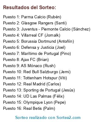 Resultados del sorteo: