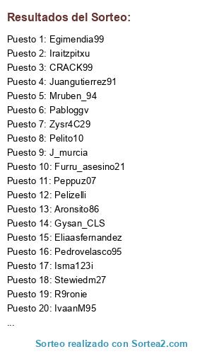 Lista de participantes: Gimnàstic de Tarragona (Juanfrantorralba), Málaga (Moncayitos), UD Almería (X_ThiagoSilva), FC Barcelona (Marcalca), PSG (Assasinstoto), Boca Juniors (isma123i), CSKA Moscow (Juangutierrez91), Atlético de Madrid (Spain_kiko), Universidad de Chile (Marjaivan), Southampton (Eusk-), Manchester United (FlacidoenDomingo), Girona FC (Capea41), Liverpool FC (Pabloggv), River Plate (R9ronie), Real Madrid (U1060358), Manchester City (PaRaNoSiS), Wolfsburgo (Kano31121993), Spurs (Enyalion), Alavés (Tximini), Olympique Lyonnais (Trotters93), Olympiakos (Jorgena87), AC Milan (Pelizelli), Shakhtar Donetsk (Pelito10), Orlando Pirates (CRACK99), Borussia Dortmund (Alr1979), Real Sociedad (Hosquin7), Getafe (Braveitor97), RCD Espanyol (J_murcia), Watford FC (Sacisto), CD Lugo (Facio7), Olympique Marseille (Balateam), Torino FC (Adrimaister10).