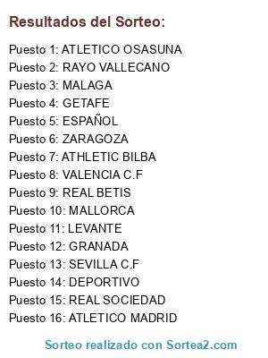 Lista de participantes: ATHLETIC BILBA, ATLETICO MADRID, SEVILLA C.F, REAL BETIS, VALENCIA C.F, ATLETICO OSASUNA, MALLORCA, ESPAÑOL, RAYO VALLECANO, LEVANTE, MALAGA, ZARAGOZA, GRANADA, DEPORTIVO, GETAFE, REAL SOCIEDAD.