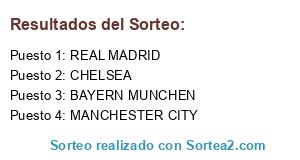 Lista de participantes: CHELSEA, BAYERN MUNCHEN, REAL MADRID, MANCHESTER CITY.