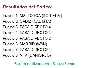 Lista de participantes: CADIZ (CADISTA), PASA DIRECTO 1, MADRID (WAN), ATM (DANIORLO).