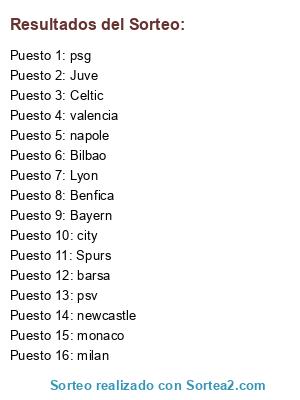 Lista de participantes: Celtic, Zenit, Lazio, Valencia.