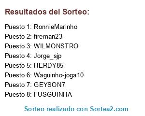 Lista de participantes: GEYSON7, HERDY85, Jorge_sjp, WILMONSTRO, fireman23, RonnieMarinho, Waguinho-joga10, FUSGUINHA, .