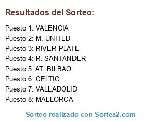 Lista de participantes: AT. BILBAO, M. UNITED, R. SANTANDER, VALLADOLID, RIVER PLATE, CELTIC, VALENCIA , MALLORCA.
