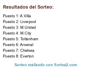 Lista de participantes: Arsenal, M.United, M.City, Everton, Liverpool, A.Villa, Tottenham, Chelsea.