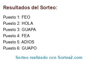 Lista de participantes: HOLA, ADIOS, FEO, FEA, GUAPO, GUAPA.