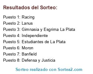 Lista de participantes: Lanus, Banfield, Defensa y Justicia, Gimnasia y Esgrima La Plata, Estudiantes de La Plata, Racing, Independiente, Moron.