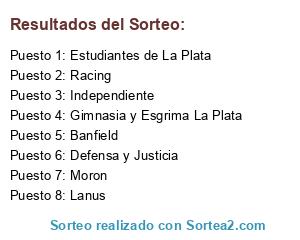 Lista de participantes: Lanus, Banfield, Defensa y Justicia, Gimnasia y Esgrima La Plata, Estudiantes de La Plata, Racing, Independiente, Moron.